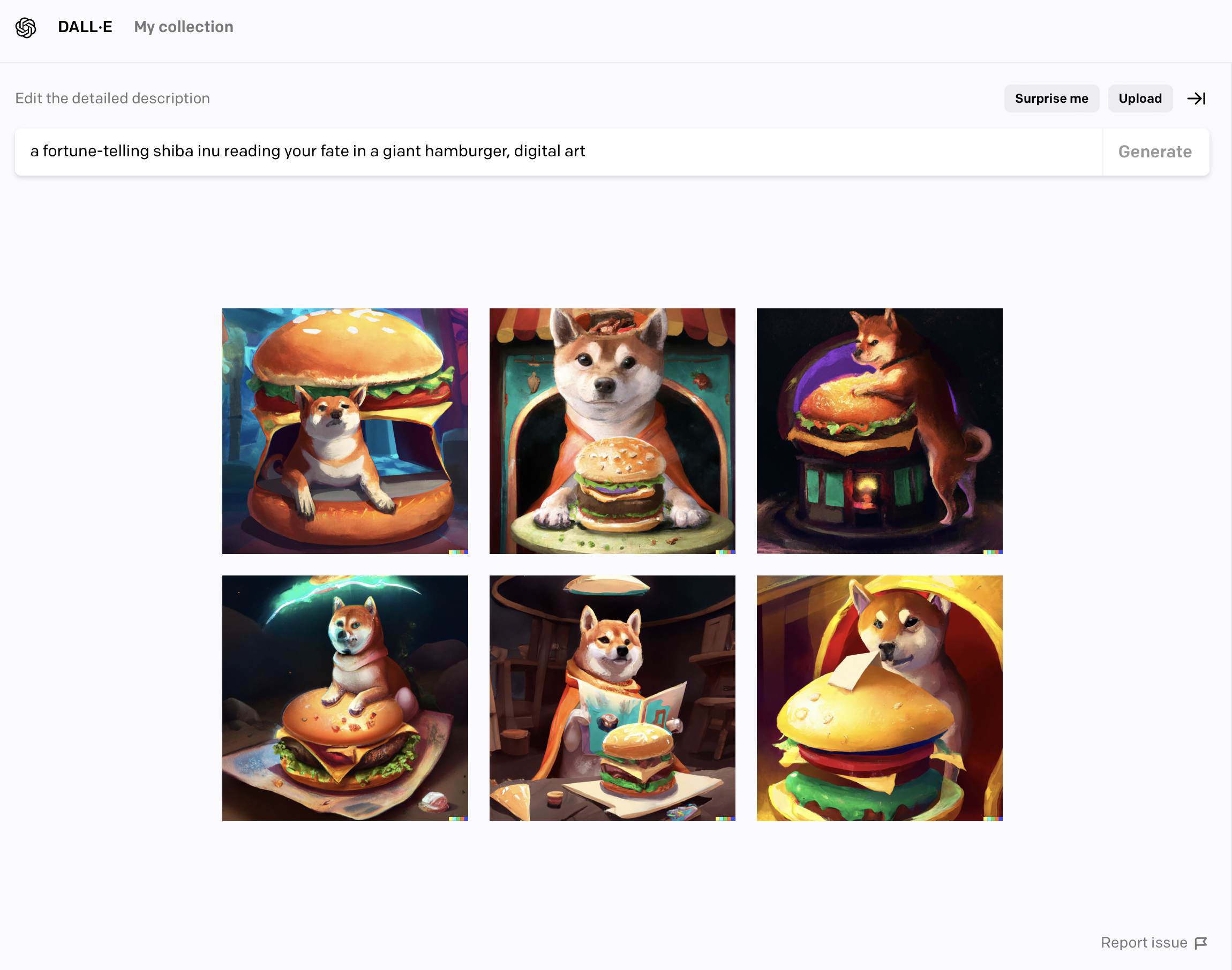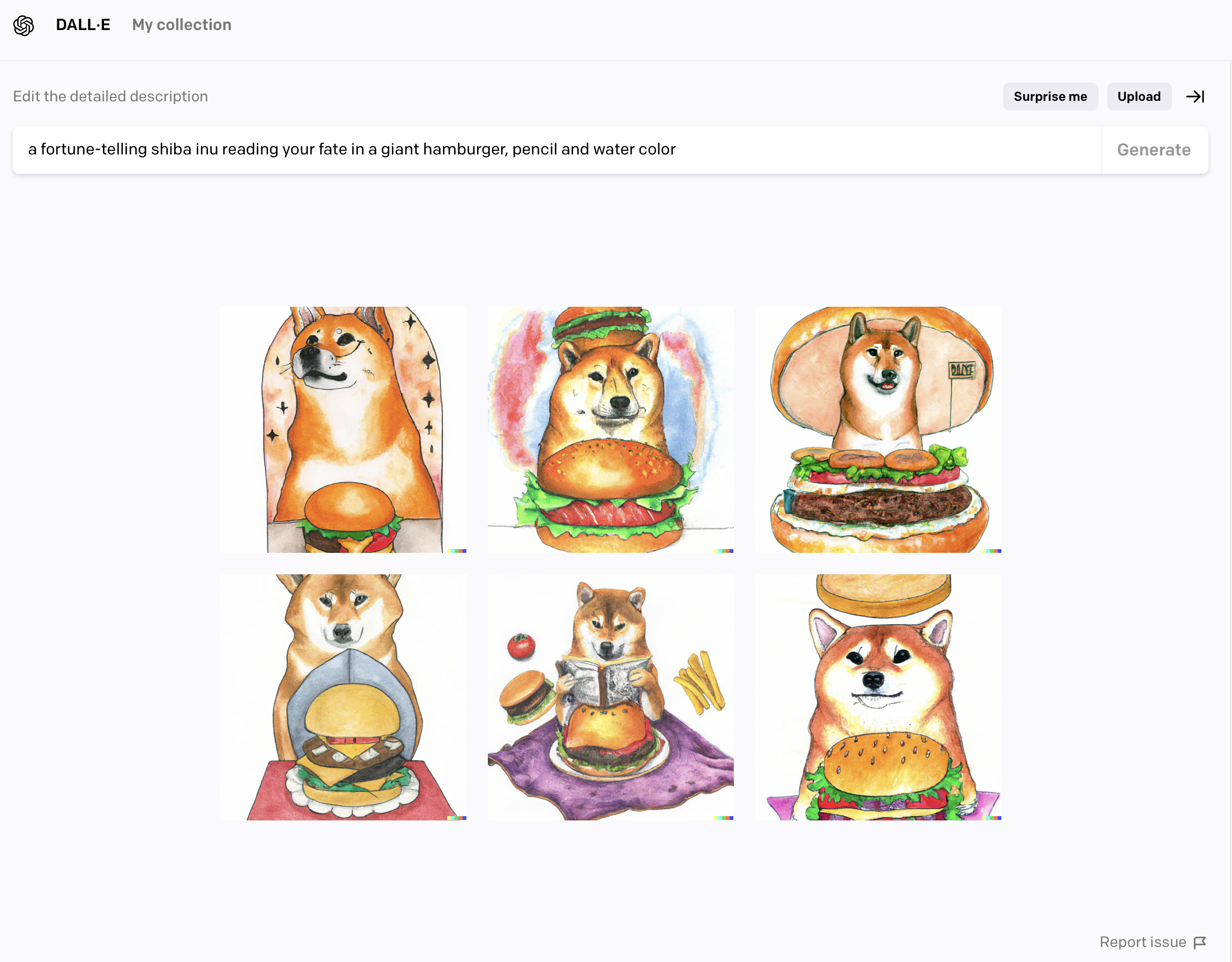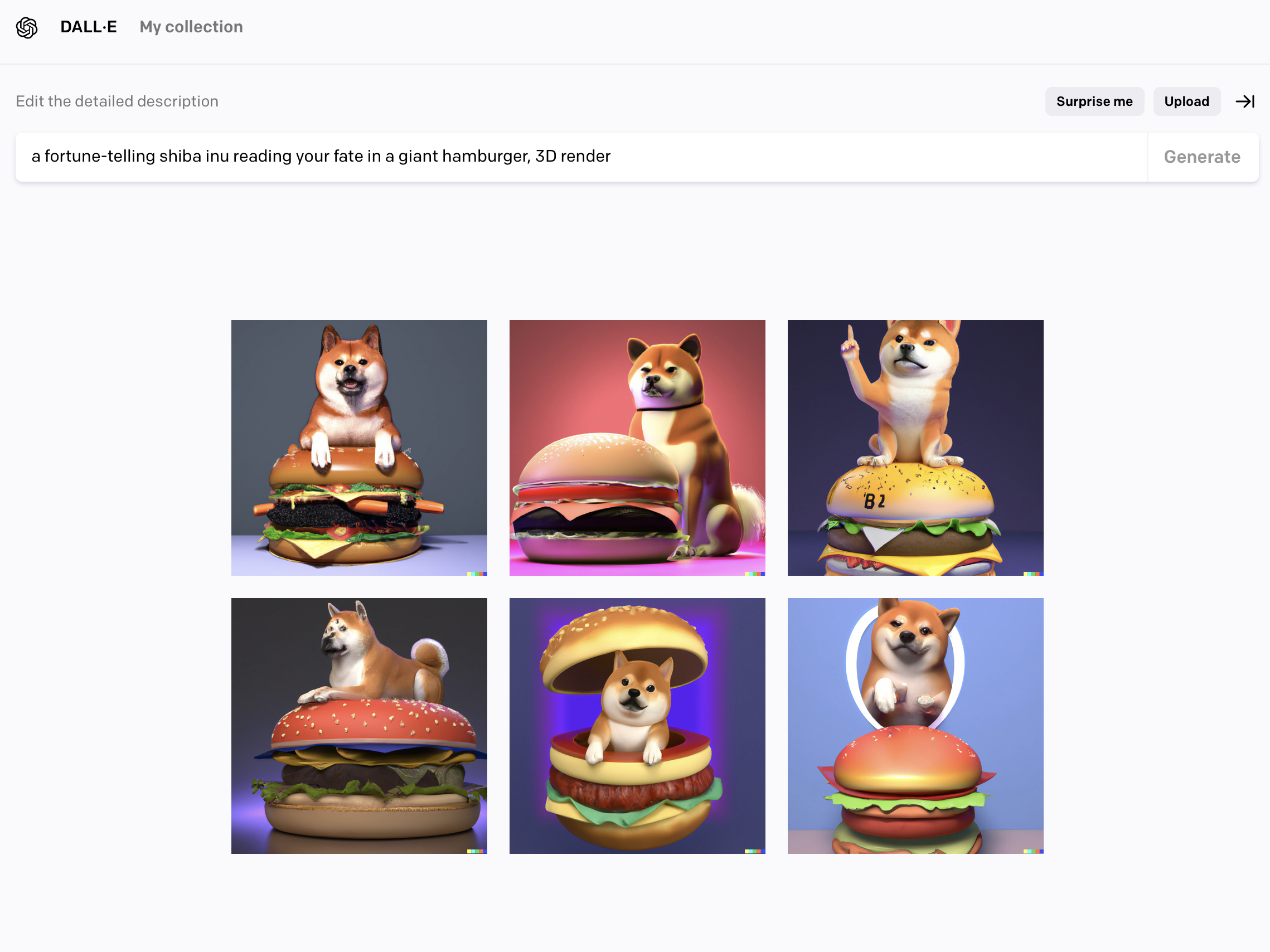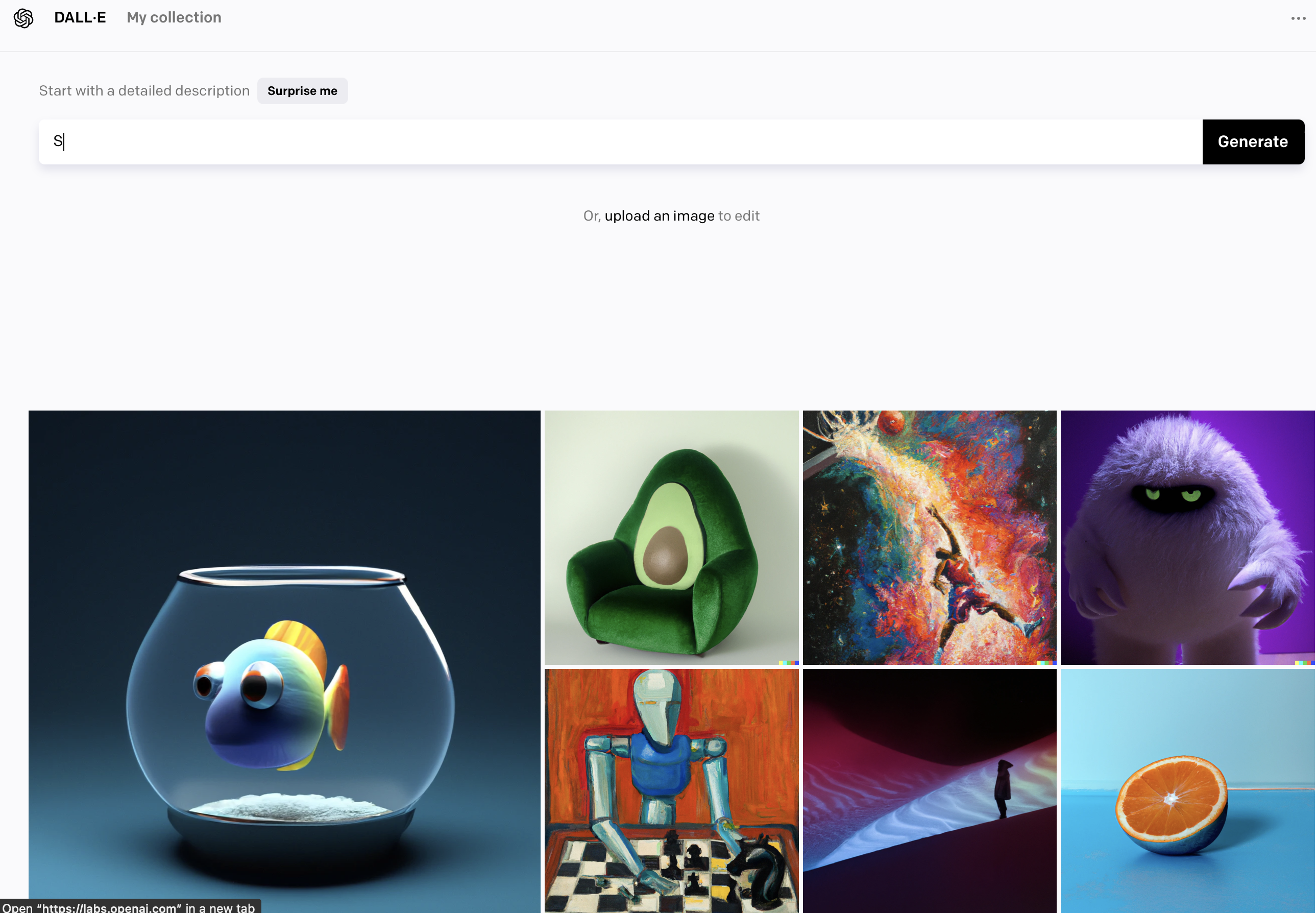 몇가지 단어로 이루어진 문장을 치면 DALL.E 2 는 이미지를 만들어준다.