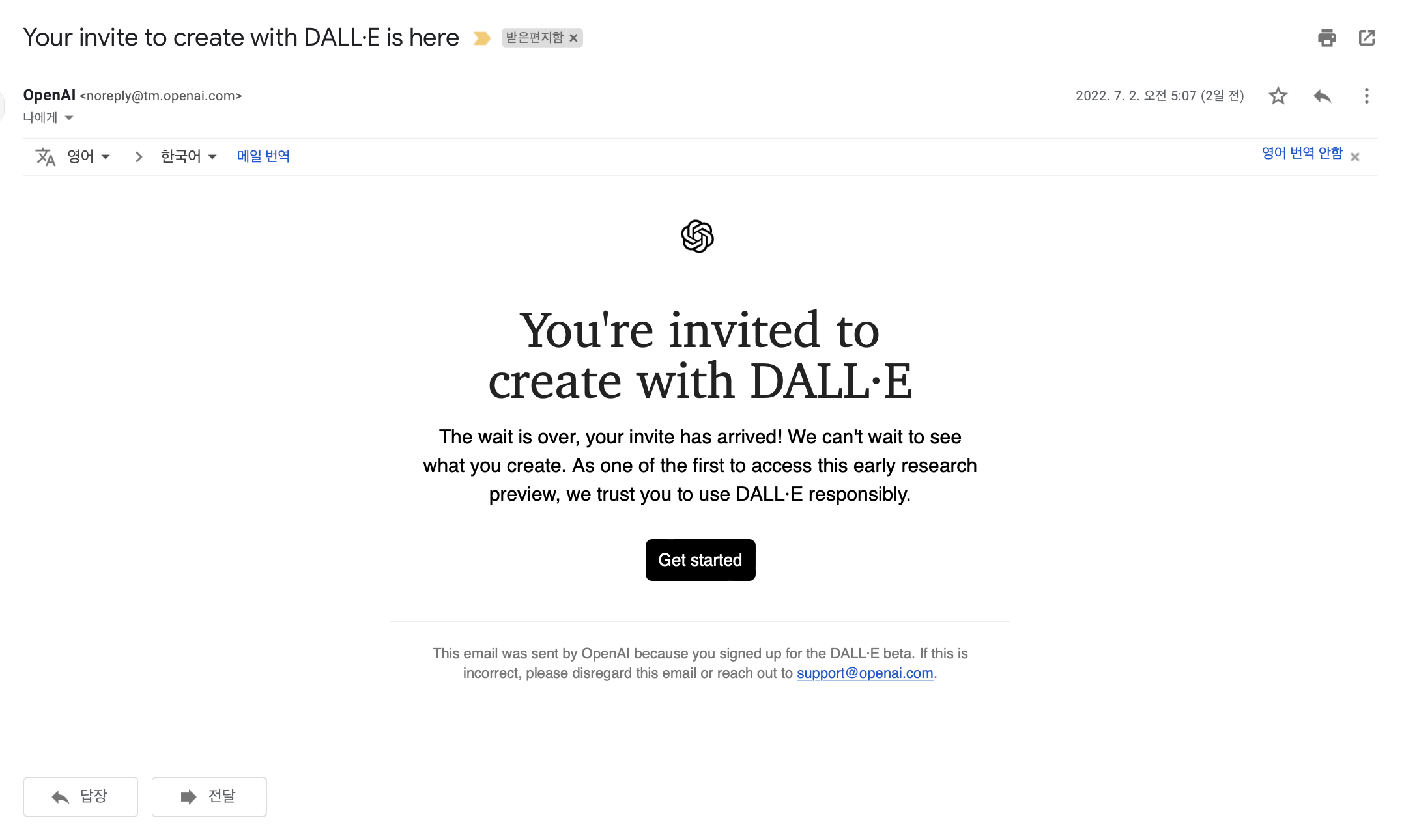 정상적으로 신청이 되었다면 OpenAI로부터 메일이 온다!