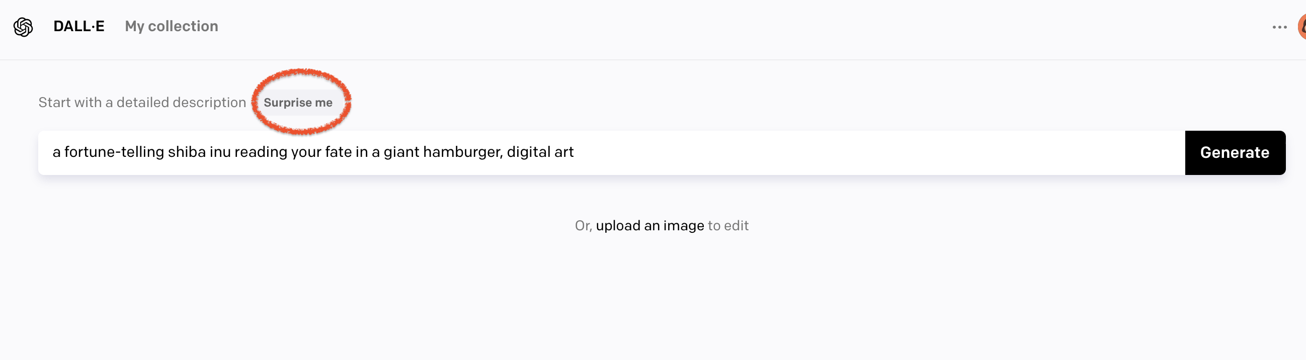 처음에는 뭐부터 입력해야할지 감이 안온다! 그럴때는 검색창 상단에 Surprise Me! 를 눌러봤다.