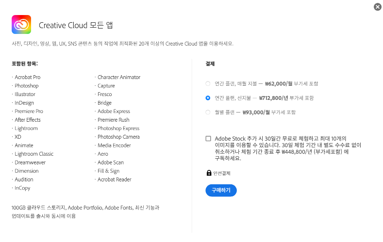 지금 나는 사무실을 따로 임대하고있지 않아서 고정비용 지출이 적긴 하더라도 기본적으로 어도비 프로그램을 3개 이상 사용하기 때문에 모든앱 비용으로 사용하고 있다. 셔터스톡도 이용하고있고, 유료 어셋을 사용할 때도 있고 기타 구독료들을 생각하면 연간... 소프트웨어 구독료로 100만원 내외로 소요 된다.
