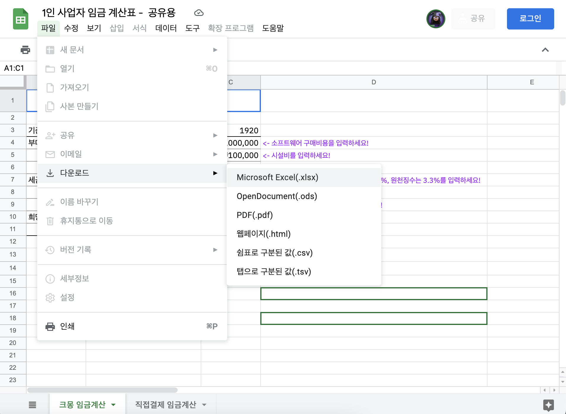 따로 권한 없이 아래 이미지처럼 다운로드 하시면 계산해볼 수 있다.